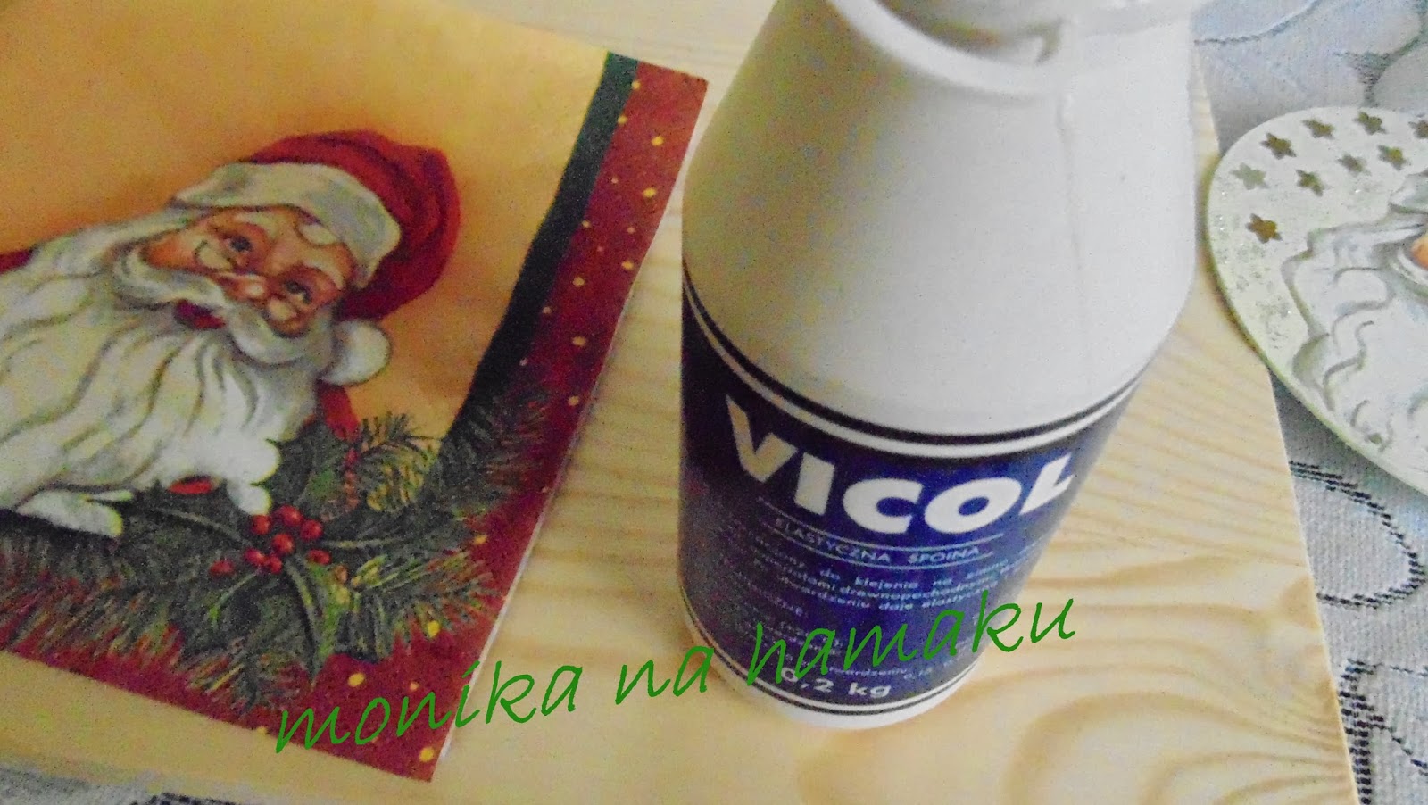 Dziś trochę zawieszek świątecznych, które zrobiłam dla mojej przyjaciółki i jej rodziny, spodobał jej się mikołaj z potęgi świąt. Nie lubię robić dwa razy tego samego, więc tym razem inne obrazki i inne dodatki. A ponieważ ona bardzo lubi wszystko co się świeci dodałam brokatu srebrnego i konturówki stare złoto. Od razu zaznaczę, że z konturówką się jeszcze nie zaprzyjaźniłam ale próbuję.